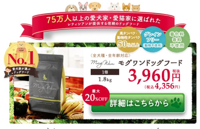 モグワンは食いつきが良く、手作りフードのようなドッグフードを目指して作られているので、愛犬の健康を願う飼い主の方から多くの支持を得ている人気の商品です。