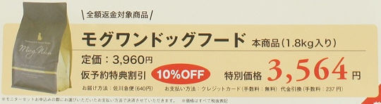 もしずっと10%OFFの3,564円であれば、『モグワン』の本商品(3,960円)を”仮予約”してもいいという方