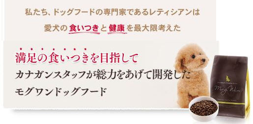 カナガンドッグフードを販売しているドッグフードの専門化である「株式会社レティシアン」の日本人スタッフと、ペット先進国のイギリスの工場と打ち合わせを重ねて2年がかりで作り上げられた日本独自のドッグフードがモグワンなんです。